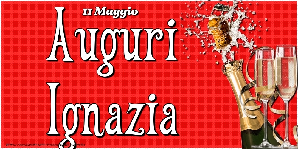 11 Maggio - Auguri Ignazia! | Cartolina con champagne su sfondo rosso | Cartoline di onomastico
