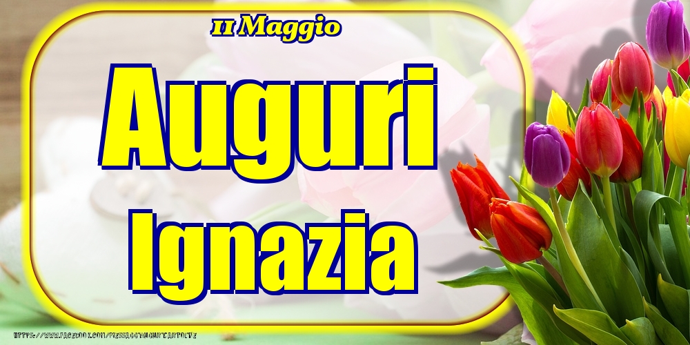 11 Maggio - Auguri Ignazia! | Cartolina con tulipani colorati | Cartoline di onomastico