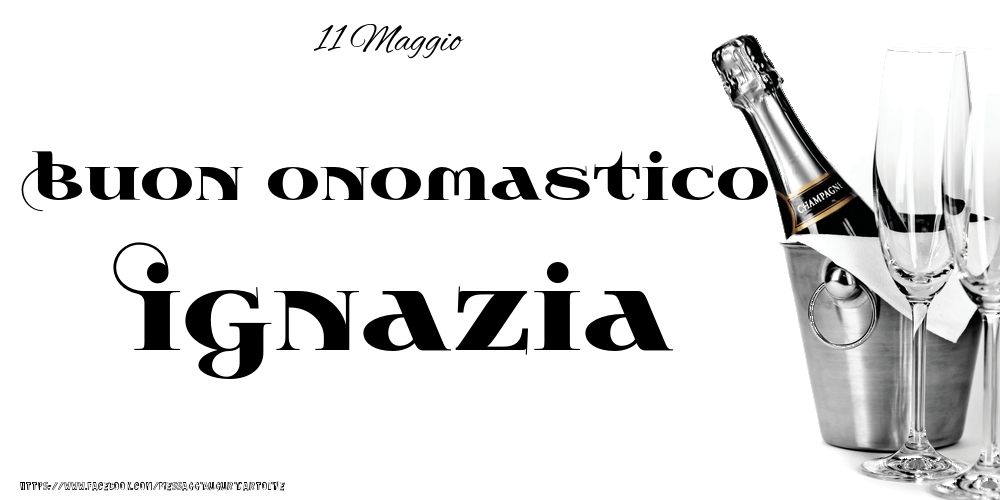 11 Maggio - Buon onomastico Ignazia! | Cartolina con champagne in ghiaccio su sfondo bianco | Cartoline di onomastico