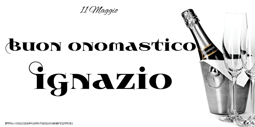 11 Maggio - Buon onomastico Ignazio! | Cartolina con champagne in ghiaccio su sfondo bianco | Cartoline di onomastico