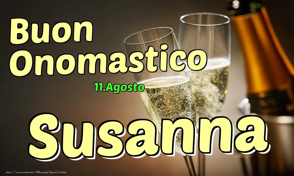 Scopri questa cartolina con 2 bicchieri con champagne sullo sfondo unica e personalizzata per la festa dell'onomastico e preparati a condividere un momento di gioia e felicità con il destinatario. Che tu stia inviando il messaggio a distanza o desideri sorprendere la persona amata, questo biglietto di auguri con il nome Susanna renderà la festa dell'onomastico davvero speciale e memorabile. Questo biglietto di auguri di onomastico con nome Susanna può essere scaricata gratis o inviare tramite Whatsapp, Facebook, Twitter, Pinterest. Immagine di buon onomastico con 2 bicchieri con champagne sullo sfondo e dimensioni 1000px x 600px.