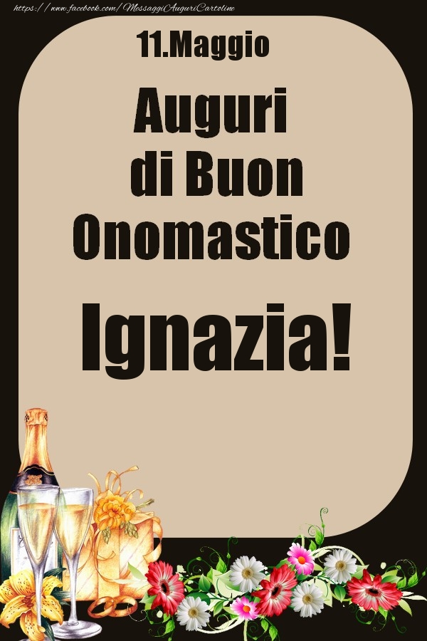 11.Maggio - Auguri di Buon Onomastico  Ignazia! | Cartolina con composizione con champagne e fiori per signori o signore | Cartoline di onomastico