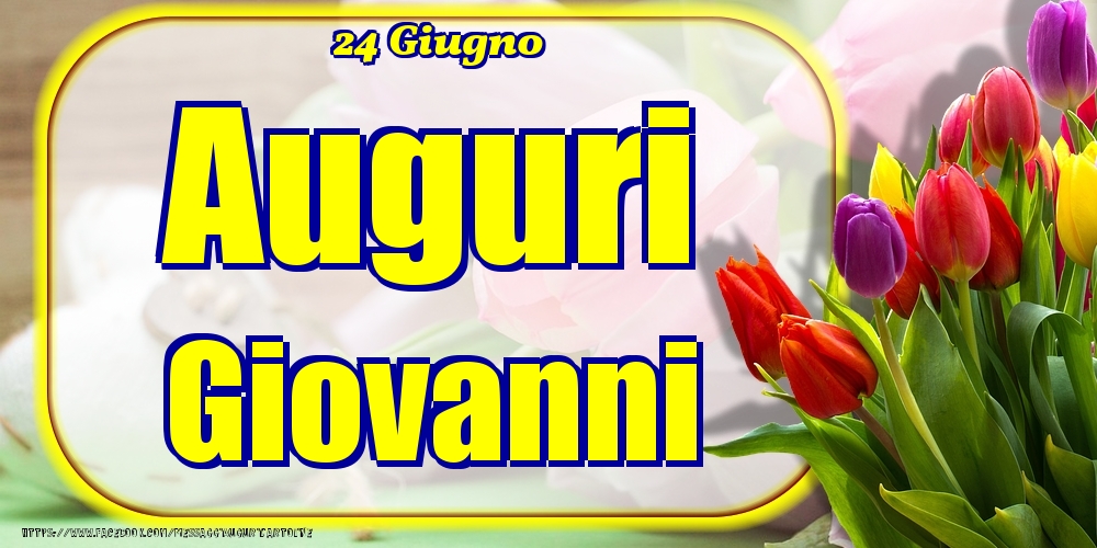 24 Giugno - Auguri Giovanni! | Cartolina con tulipani colorati | Cartoline di onomastico