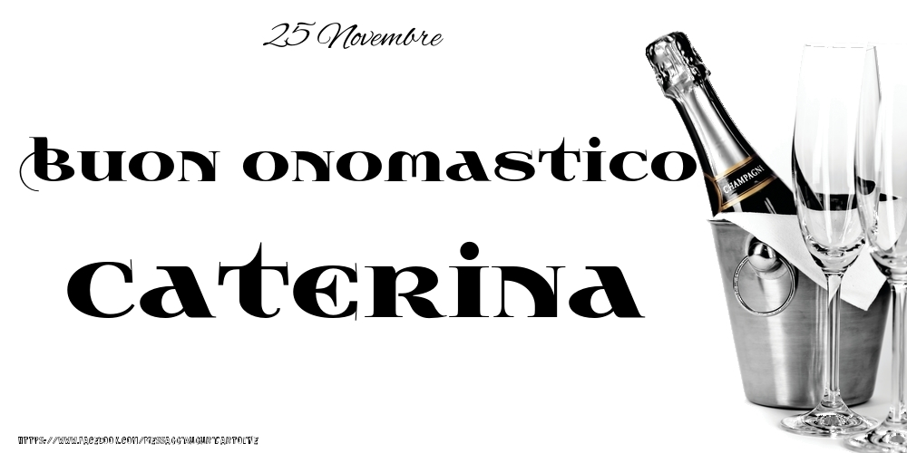 25 Novembre - Buon onomastico Caterina! | Cartolina con champagne in ghiaccio su sfondo bianco | Cartoline di onomastico