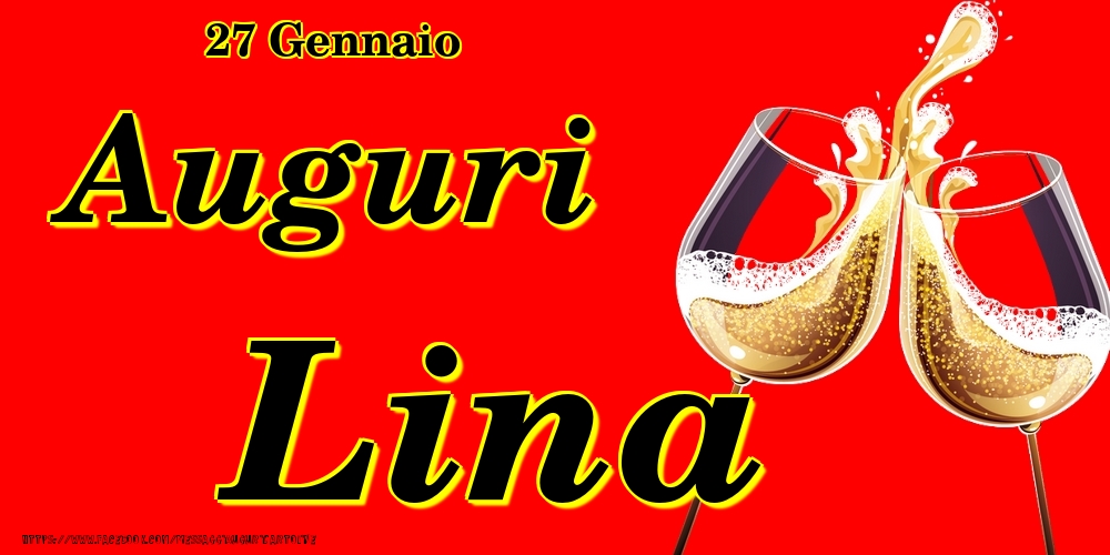 27 Gennaio - Auguri Lina! | Cartolina con bicchieri di champagne su sfondo rosso | Cartoline di onomastico