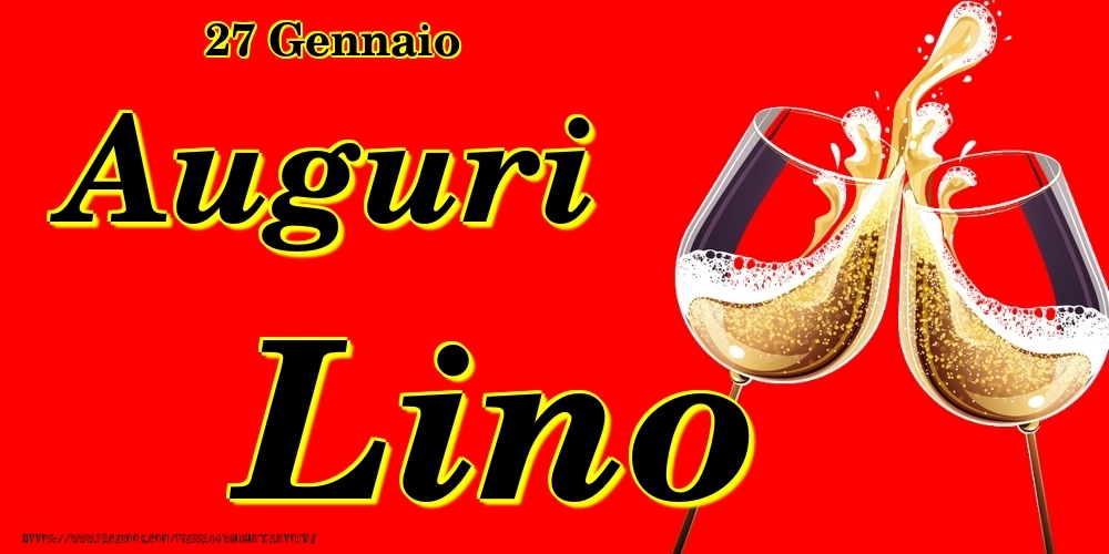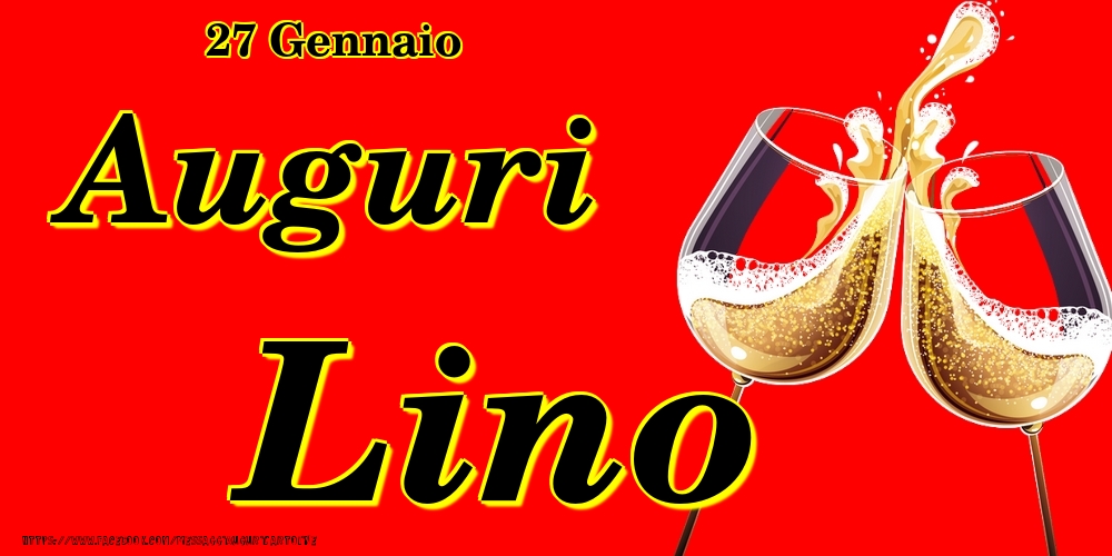 27 Gennaio - Auguri Lino! | Cartolina con bicchieri di champagne su sfondo rosso | Cartoline di onomastico
