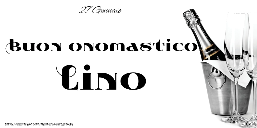 27 Gennaio - Buon onomastico Lino! | Cartolina con champagne in ghiaccio su sfondo bianco | Cartoline di onomastico