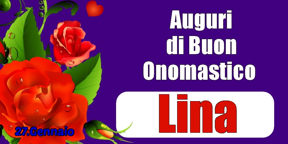 27.Gennaio - Auguri di Buon Onomastico  Lina! | Cartolina con rose per signore | Cartoline di onomastico