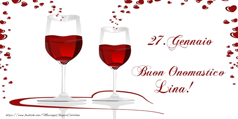 Scopri questa cartolina con bicchieri da champagne e cuori unica e personalizzata per la festa dell'onomastico e preparati a condividere un momento di gioia e felicità con il destinatario. Che tu stia inviando il messaggio a distanza o desideri sorprendere la persona amata, questo biglietto di auguri con il nome Lina renderà la festa dell'onomastico davvero speciale e memorabile. Questo biglietto di auguri di onomastico con nome Lina può essere scaricata gratis o inviare tramite Whatsapp, Facebook, Twitter, Pinterest. Immagine di buon onomastico con bicchieri da champagne e cuori e dimensioni 800px x 400px.