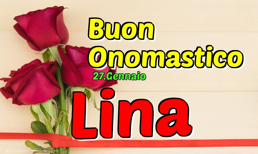 Scopri questa cartolina con tre rose rosse con scritta gialla unica e personalizzata per la festa dell'onomastico e preparati a condividere un momento di gioia e felicità con il destinatario. Che tu stia inviando il messaggio a distanza o desideri sorprendere la persona amata, questo biglietto di auguri con il nome Lina renderà la festa dell'onomastico davvero speciale e memorabile. Questo biglietto di auguri di onomastico con nome Lina può essere scaricata gratis o inviare tramite Whatsapp, Facebook, Twitter, Pinterest. Immagine di buon onomastico con tre rose rosse con scritta gialla e dimensioni 1000px x 600px.