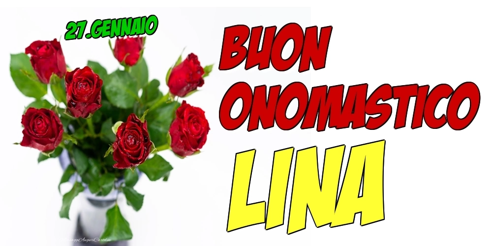 27.Gennaio - Buon Onomastico Lina! | Cartolina con rose rosse in vaso | Cartoline di onomastico