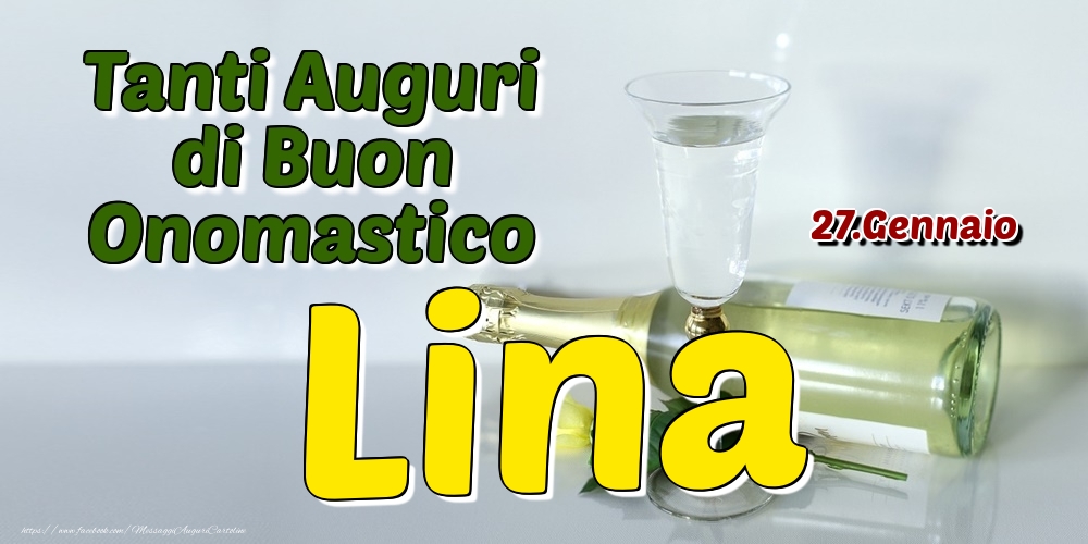 27.Gennaio - Tanti Auguri di Buon Onomastico Lina | Cartolina con champagne e una rosa gialla | Cartoline di onomastico