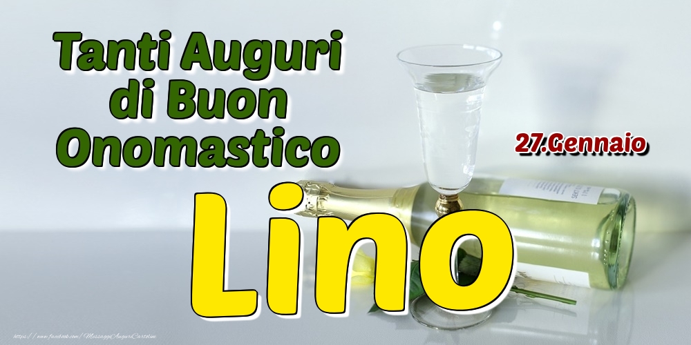 27.Gennaio - Tanti Auguri di Buon Onomastico Lino | Cartolina con champagne e una rosa gialla | Cartoline di onomastico