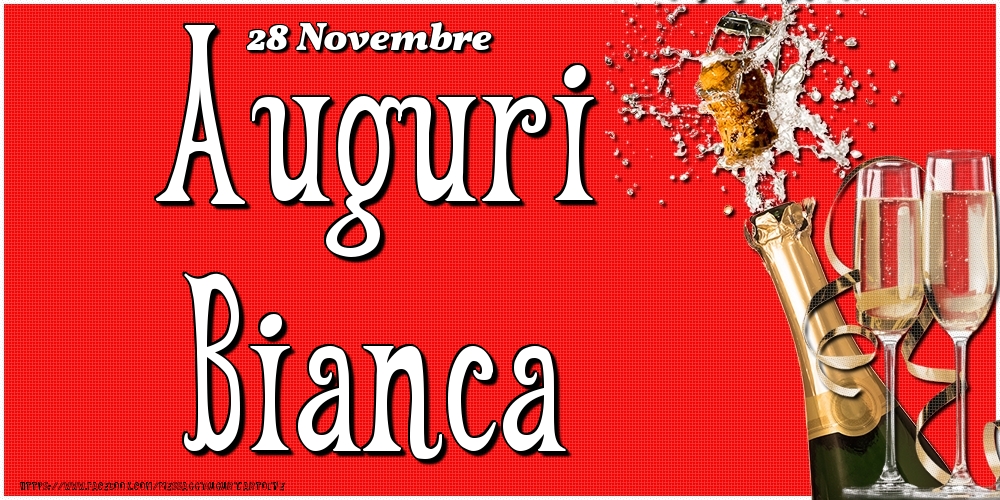 28 Novembre - Auguri Bianca! | Cartolina con champagne su sfondo rosso | Cartoline di onomastico