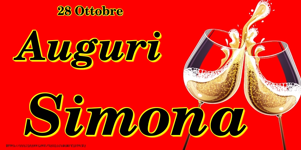 28 Ottobre - Auguri Simona! | Cartolina con bicchieri di champagne su sfondo rosso | Cartoline di onomastico