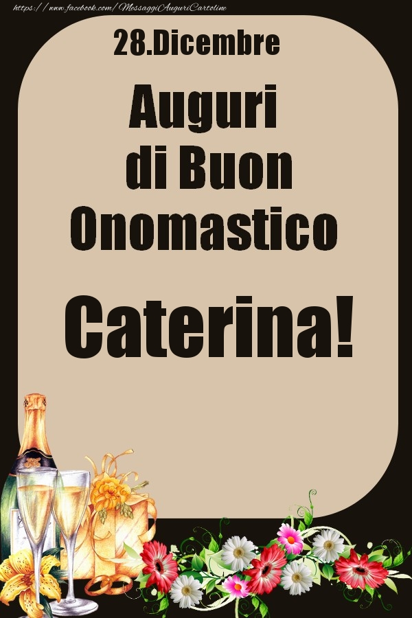 28.Dicembre - Auguri di Buon Onomastico  Caterina! | Cartolina con composizione con champagne e fiori per signori o signore | Cartoline di onomastico