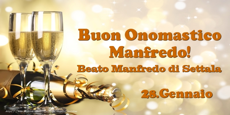 28.Gennaio Beato Manfredo di Settala Buon Onomastico Manfredo! | Cartolina con champagne per uomini o donne | Cartoline di onomastico