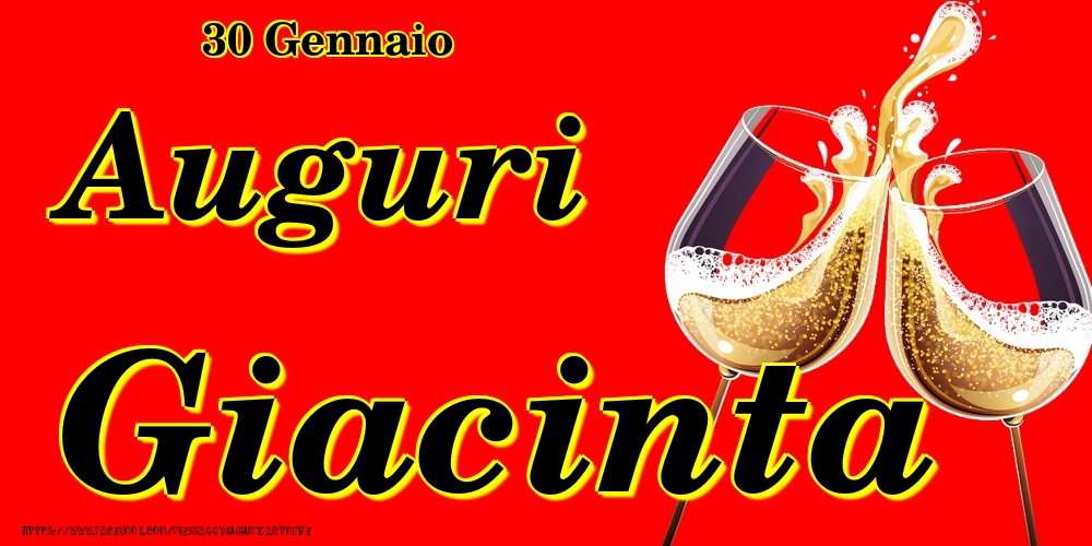30 Gennaio - Auguri Giacinta! | Cartolina con bicchieri di champagne su sfondo rosso | Cartoline di onomastico