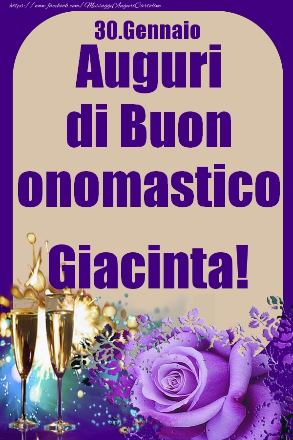 30.Gennaio - Auguri di Buon Onomastico  Giacinta! | Cartolina con bicchieri di champagne e rosa | Cartoline di onomastico