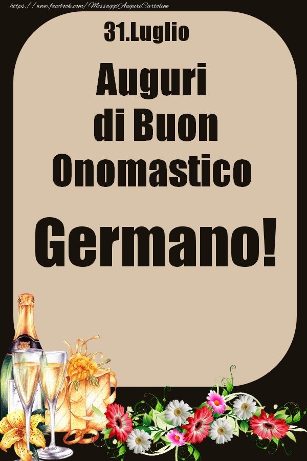 31.Luglio - Auguri di Buon Onomastico  Germano! | Cartolina con composizione con champagne e fiori per signori o signore | Cartoline di onomastico