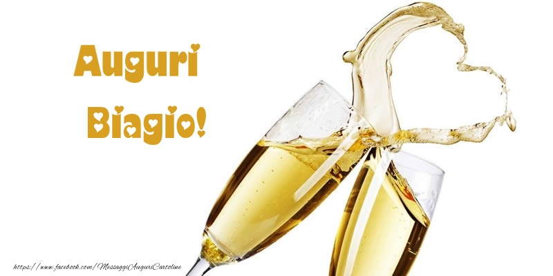 Auguri Biagio! | Cartolina con bicchieri di champagne e cuore | Cartoline di auguri
