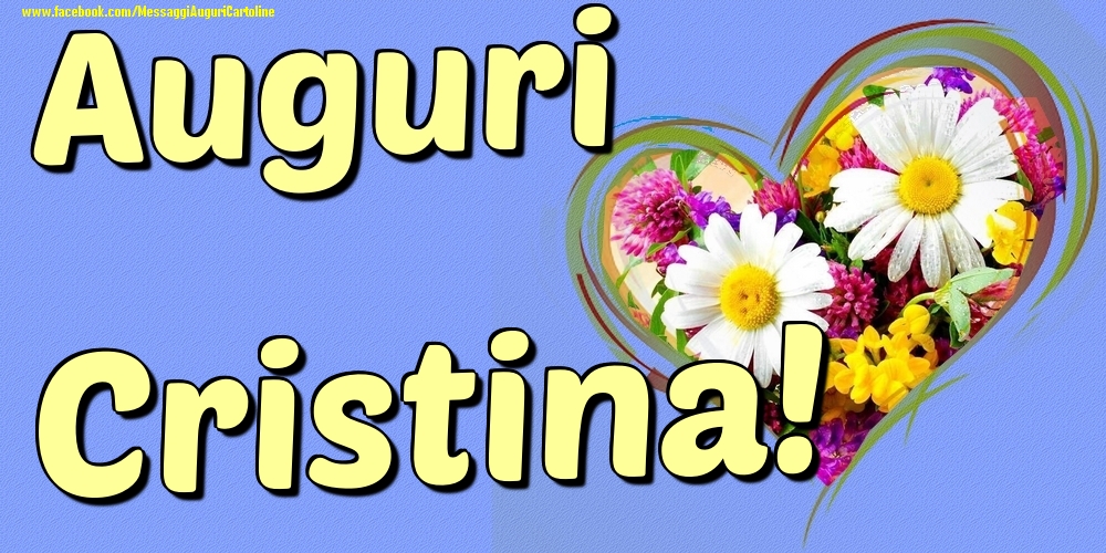 Auguri Cristina | Cartolina con cuore con fiori su sfondo blu | Cartoline di onomastico