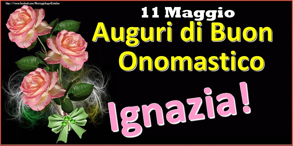 Auguri di Buon Onomastico Ignazia! - 11 Maggio | Cartolina con rose rosa su sfondo nero | Cartoline di onomastico