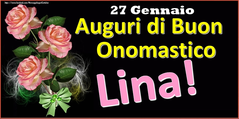 Auguri di Buon Onomastico Lina! - 27 Gennaio | Cartolina con rose rosa su sfondo nero | Cartoline di onomastico