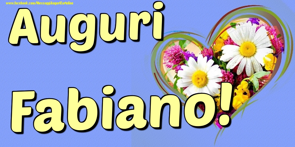 Auguri Fabiano | Cartolina con cuore con fiori su sfondo blu | Cartoline di onomastico