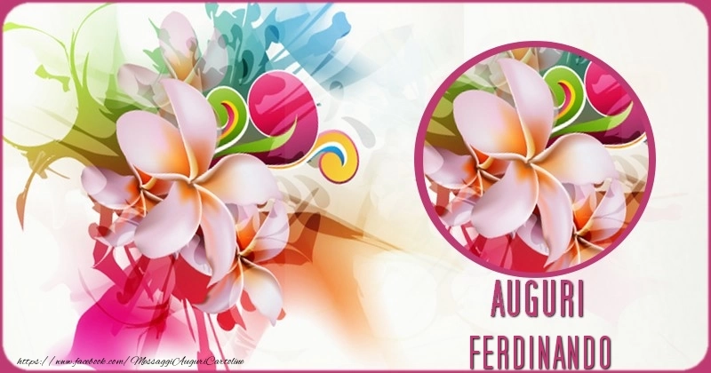 Auguri Ferdinando | Cartolina con cornice per foto rotonda e fiori | Cartoline di auguri