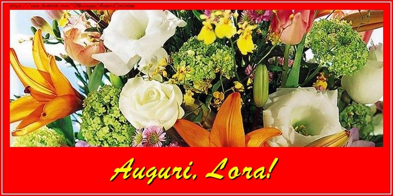 Auguri, Lora! | Cartolina con composizione con fiori | Cartoline di auguri