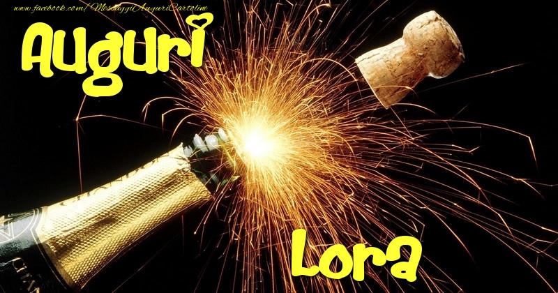Auguri Lora | Cartolina con champagne che si apre | Cartoline di auguri