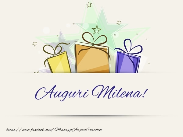 Questa cartolina d'auguri personalizzato con regali e stelle è decorato con un design festivo e pieno di colore, perfetto per riflettere la gioia e l'allegria di un compleanno. Il nome del destinatario, Milena, è il fulcro di questo biglietto, inciso con eleganza e raffinatezza per farlo sentire davvero speciale nel giorno del suo compleanno. Questo biglietto di auguri con il nome Milena può essere scaricata gratis o inviare tramite Whatsapp, Facebook, Twitter, Pinterest. Immagine di auguri buon compleanno con regali e stelle e dimensioni 600px x 450px.