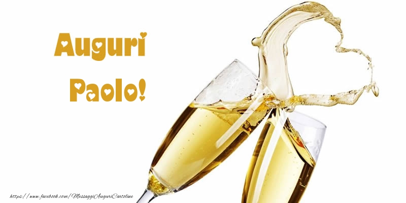 Auguri Paolo! | Cartolina con bicchieri di champagne e cuore | Cartoline di auguri