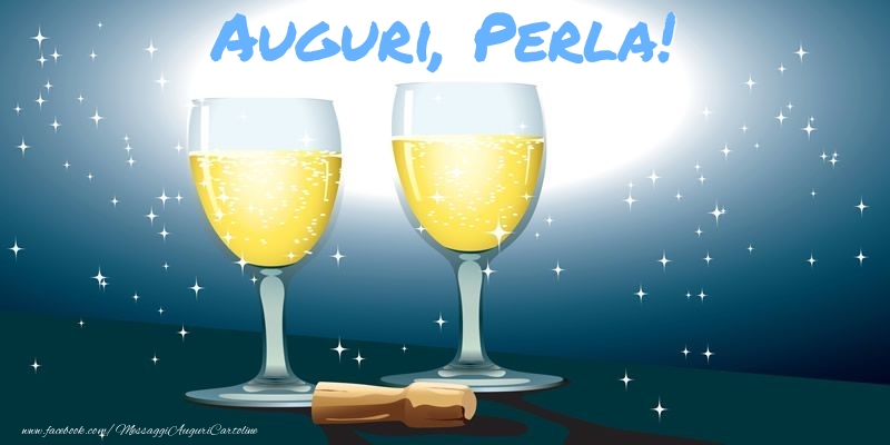 Auguri, Perla! | Cartolina con disegno con bicchieri di champagne | Cartoline di auguri