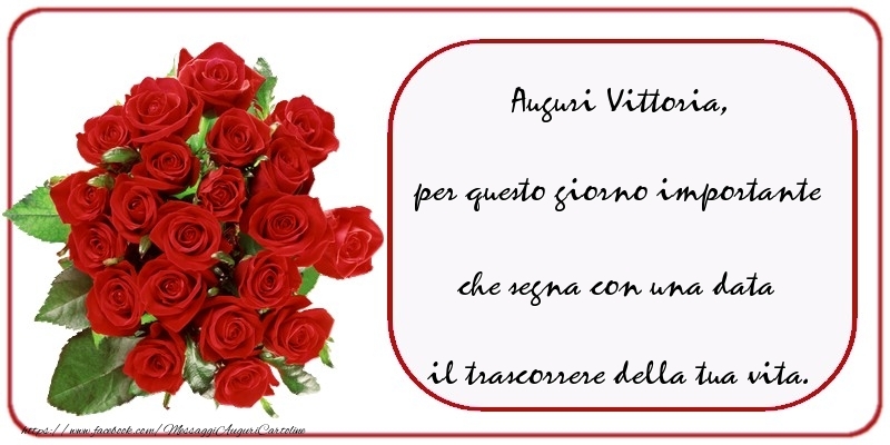 Auguri  Vittoria, per questo giorno importante che segna con una data il trascorrere della tua vita. | Cartolina con un bellissimo bouquet di rose rosse | Cartoline di compleanno