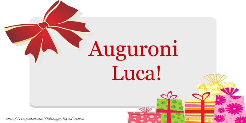 Auguroni Luca! | Cartolina con immagine con regali | Cartoline di auguri