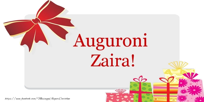 Questa cartolina d'auguri personalizzato con immagine con regali è decorato con un design festivo e pieno di colore, perfetto per riflettere la gioia e l'allegria di un compleanno. Il nome del destinatario, Zaira, è il fulcro di questo biglietto, inciso con eleganza e raffinatezza per farlo sentire davvero speciale nel giorno del suo compleanno. Questo biglietto di auguri con il nome Zaira può essere scaricata gratis o inviare tramite Whatsapp, Facebook, Twitter, Pinterest. Immagine di auguri buon compleanno con immagine con regali e dimensioni 800px x 400px.