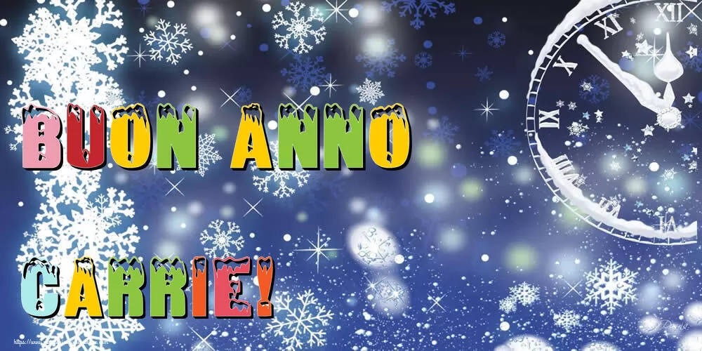 La cartolina con orologio su sfondo di fiocco di neve per l'Anno Nuovo è stata creata con amore e cura per trasmettere tutta la gioia e l'entusiasmo che accompagnano l'arrivo di un nuovo anno. Con un design festoso, questo biglietto con il nome Carrie è il regalo perfetto per augurare un meraviglioso inizio d'anno alle persone care. Questo biglietto di auguri di Anno Nuovo con nome Carrie può essere scaricata gratis o inviare tramite Whatsapp, Facebook, Twitter, Pinterest. Immagine di anno nuovo con orologio su sfondo di fiocco di neve e dimensioni 1000px x 500px.