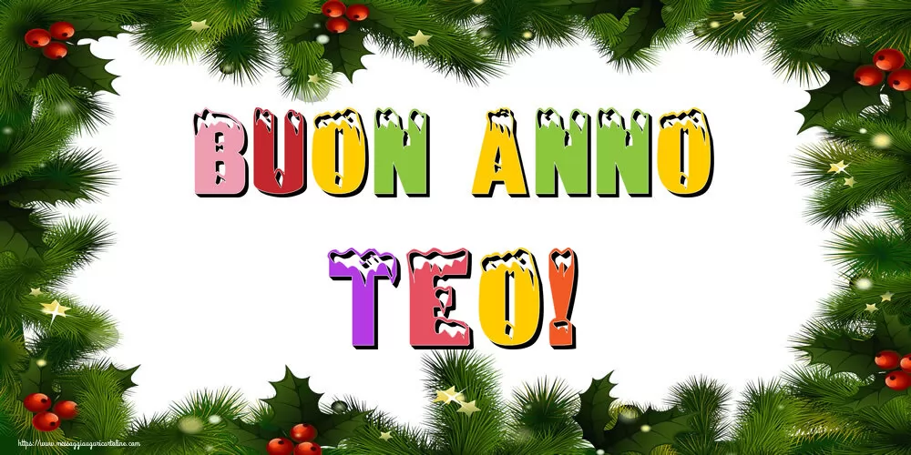 La cartolina con bordo albero e palle di Natale per l'Anno Nuovo è stata creata con amore e cura per trasmettere tutta la gioia e l'entusiasmo che accompagnano l'arrivo di un nuovo anno. Con un design festoso, questo biglietto con il nome Teo è il regalo perfetto per augurare un meraviglioso inizio d'anno alle persone care. Questo biglietto di auguri di Anno Nuovo con nome Teo può essere scaricata gratis o inviare tramite Whatsapp, Facebook, Twitter, Pinterest. Immagine di anno nuovo con bordo albero e palle di Natale e dimensioni 1000px x 500px.