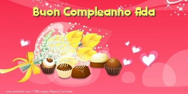 Buon Compleanno Ada | Cartolina con fiori e cioccolatini | Cartoline di compleanno