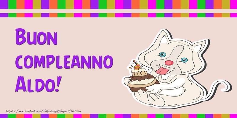 Buon compleanno Aldo! | Cartolina con gatto con torta | Cartoline di compleanno