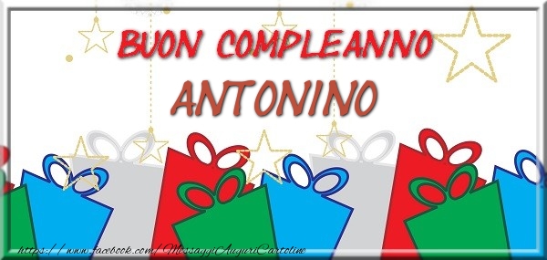 Buon compleanno Antonino | Cartolina con regali e stelle | Cartoline di compleanno