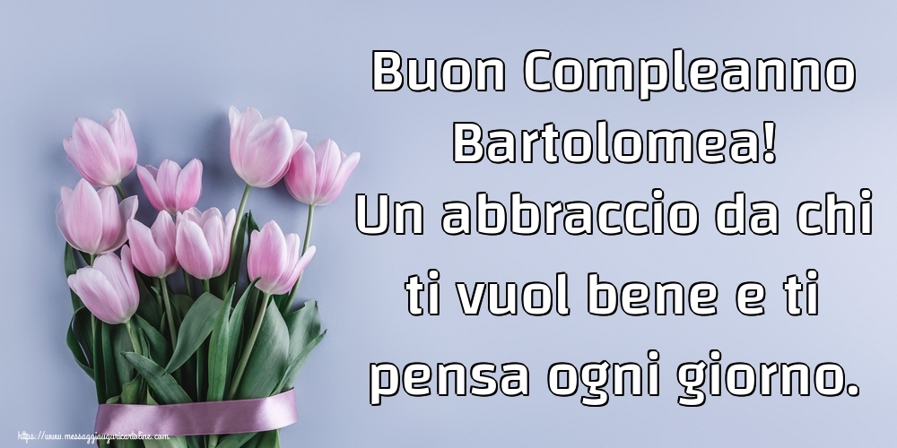 Buon Compleanno Bartolomea! Un abbraccio da chi ti vuol bene e ti pensa ogni giorno. | Cartolina con mazzo di tulipani | Cartoline di compleanno