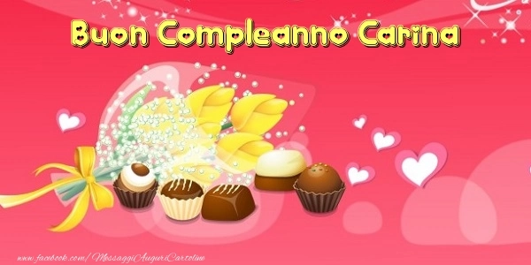 Con questa cartolina con fiori e cioccolatini, riuscirai a portare una gioia immensa al festeggiato nel giorno del suo compleanno. È un gesto piccolo, ma pieno d'affetto, che rimarrà per sempre nella sua memoria. Il nome Carina è il fulcro di questo biglietto, inciso con eleganza e raffinatezza per far sentire davvero speciale il festeggiato nel giorno del suo compleanno. Questo biglietto di auguri di compleanno con il nome Carina può essere scaricata gratis o inviare tramite Whatsapp, Facebook, Twitter, Pinterest. Immagine di buon compleanno con fiori e cioccolatini e dimensioni 600px x 300px.