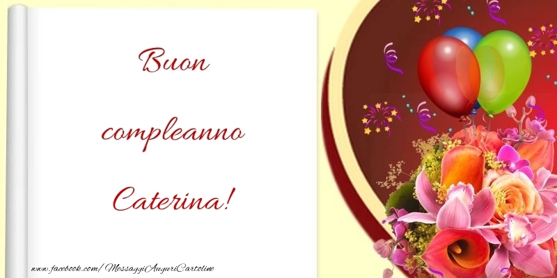 Buon compleanno Caterina | Cartolina con fiori e palloncini | Cartoline di compleanno