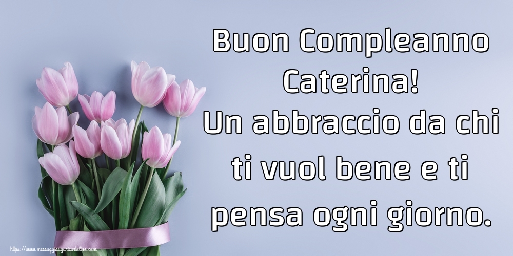 Buon Compleanno Caterina! Un abbraccio da chi ti vuol bene e ti pensa ogni giorno. | Cartolina con mazzo di tulipani | Cartoline di compleanno