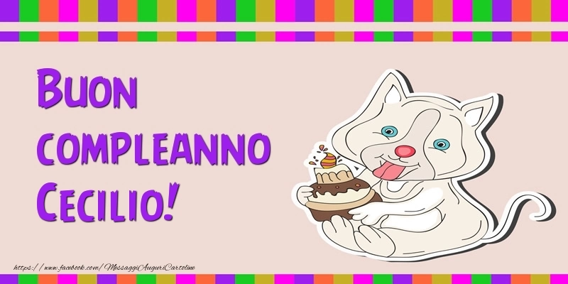 Con questa cartolina con gatto con torta, riuscirai a portare una gioia immensa al festeggiato nel giorno del suo compleanno. È un gesto piccolo, ma pieno d'affetto, che rimarrà per sempre nella sua memoria. Il nome Cecilio è il fulcro di questo biglietto, inciso con eleganza e raffinatezza per far sentire davvero speciale il festeggiato nel giorno del suo compleanno. Questo biglietto di auguri di compleanno con il nome Cecilio può essere scaricata gratis o inviare tramite Whatsapp, Facebook, Twitter, Pinterest. Immagine di buon compleanno con gatto con torta e dimensioni 800px x 400px.