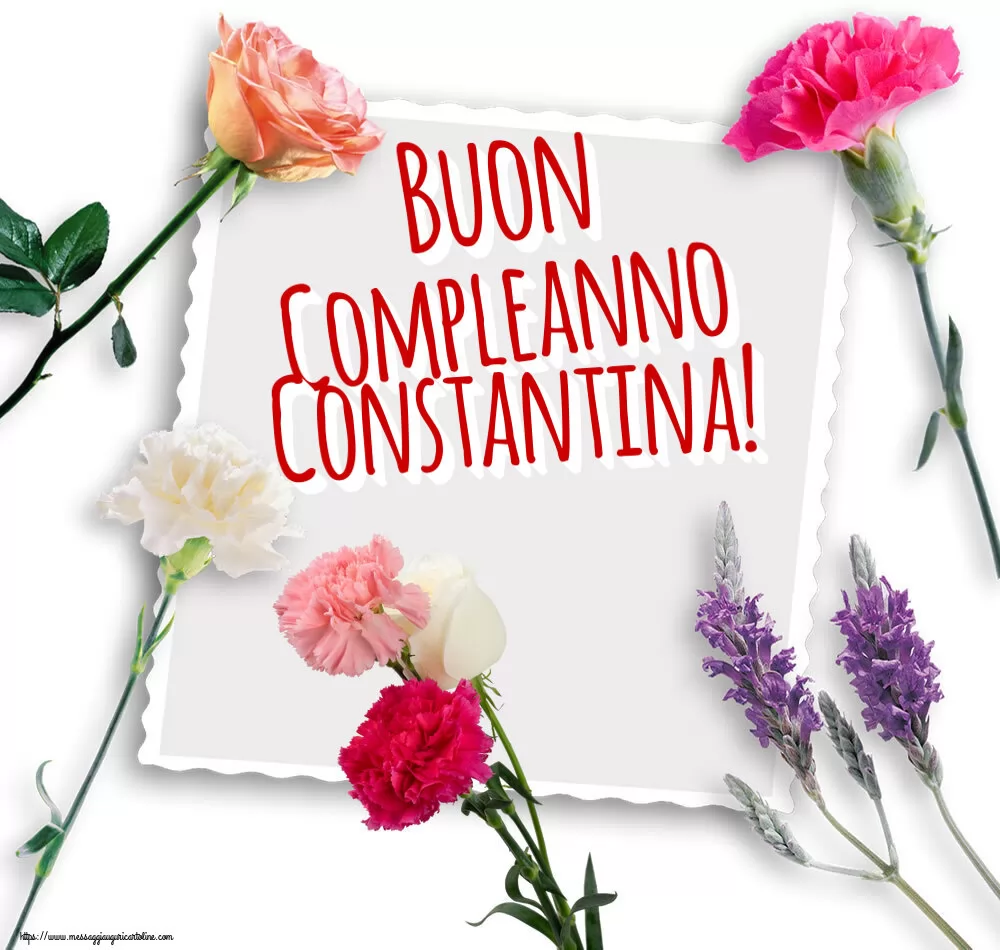 Con questa cartolina con tre garofani, riuscirai a portare una gioia immensa al festeggiato nel giorno del suo compleanno. È un gesto piccolo, ma pieno d'affetto, che rimarrà per sempre nella sua memoria. Il nome Constantina è il fulcro di questo biglietto, inciso con eleganza e raffinatezza per far sentire davvero speciale il festeggiato nel giorno del suo compleanno. Questo biglietto di auguri di compleanno con il nome Constantina può essere scaricata gratis o inviare tramite Whatsapp, Facebook, Twitter, Pinterest. Immagine di buon compleanno con tre garofani e dimensioni 1000px x 950px.
