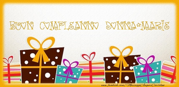 Buon Compleanno Donna-Marie | Cartolina con regali | Cartoline di compleanno